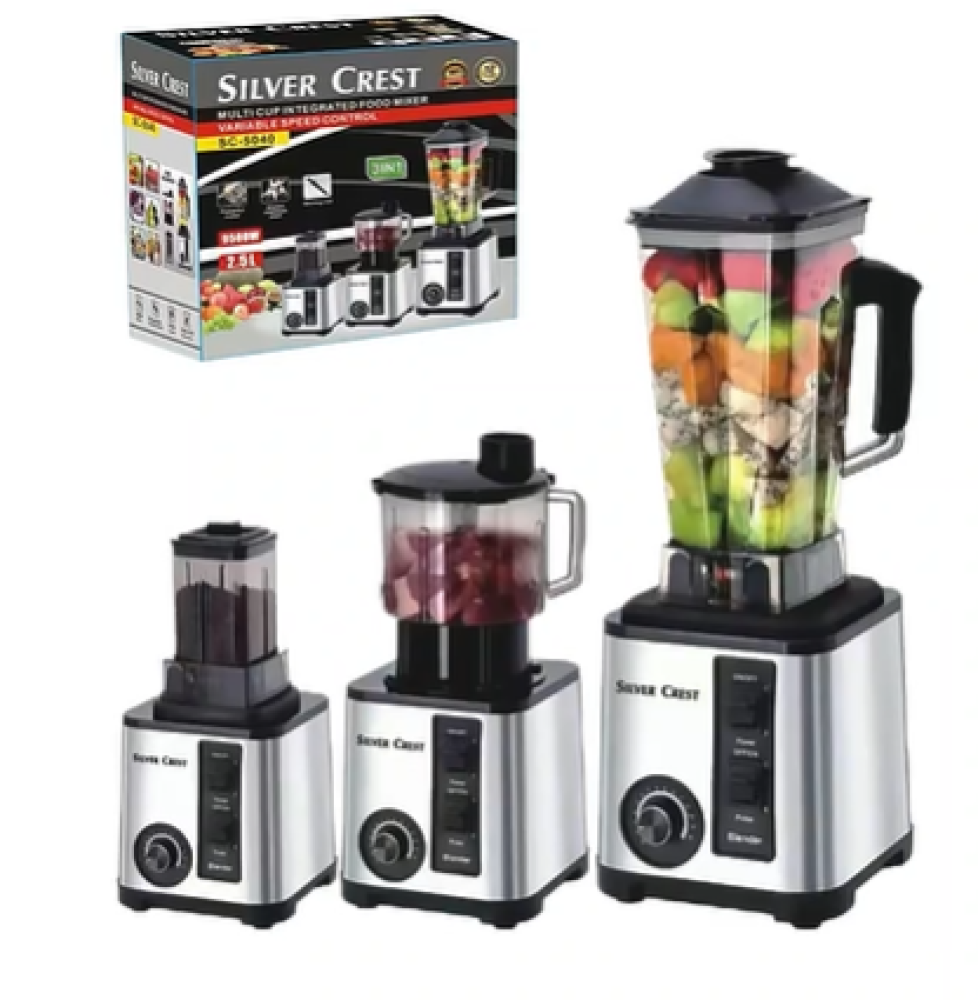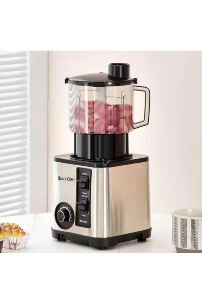 خلاط سلفر كرست 4500 وات متعدد الاستخدامات بقوة فائقة، يأتي مع مطحنة وعصارة وقاطعة خضروات، مثالي للمطبخ العصري.