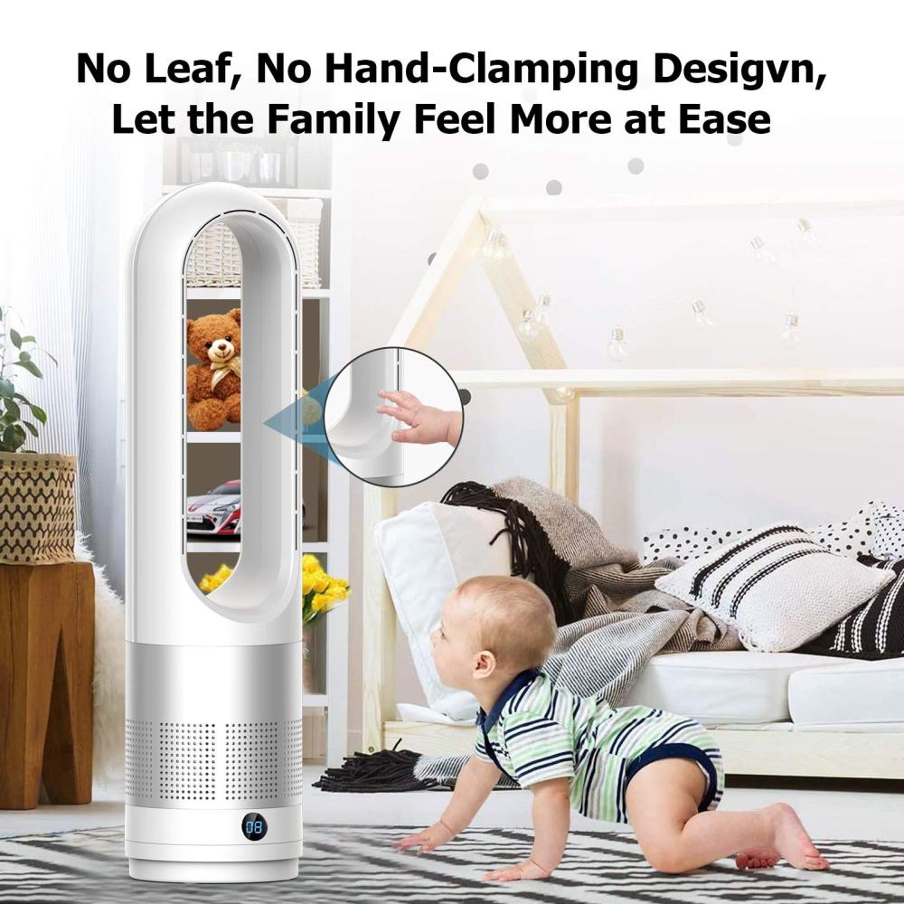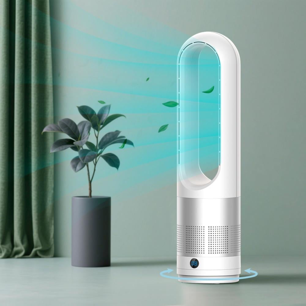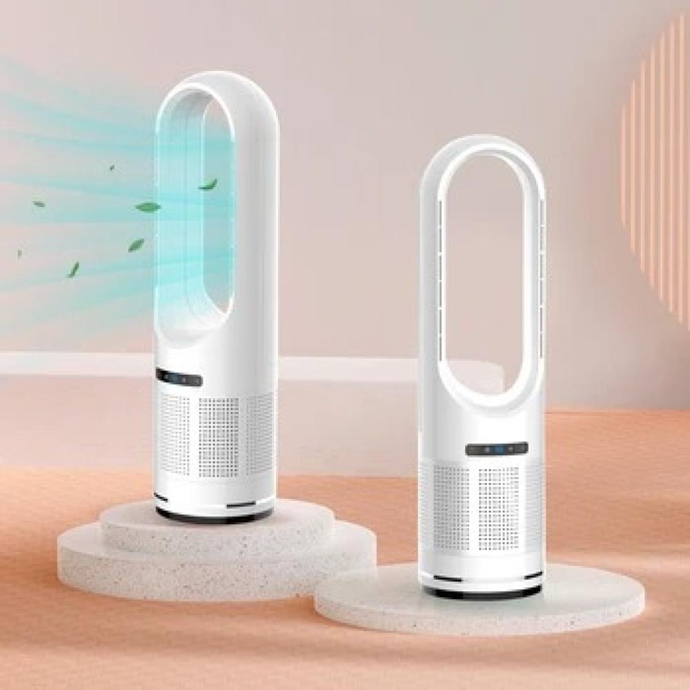 مراوح بدون شفرات تعمل كمروحة ومنقي هواء في آن واحد، توفر تدفق هواء نقي وهادئ بدون استخدام شفرات تقليدية، تصميم آمن وأنيق يناسب المنزل والمكتب لتعزيز الراحة وجودة الهواء.